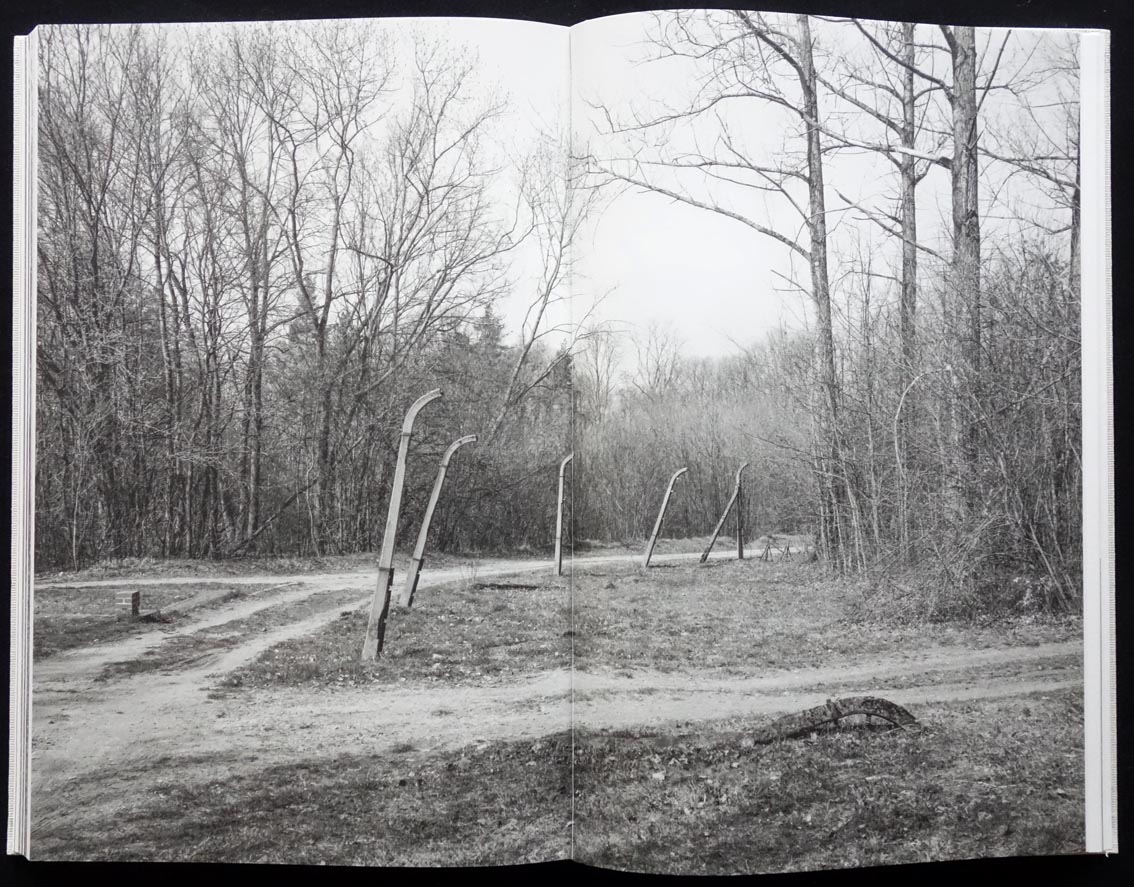 Rothes (* 1986) Buch macht durch die Einbandgestaltung neugierig: ein nebulöses Waldmotiv wirkt durch das rasternde Überzugsmaterial Gaze entweder wie durch einen engmaschigen Drahtzaun gesehen oder wie unter einem Wundverband liegend. Innen sind vor allem Relikte von baulichen Anlagen zu sehen, die von der umliegenden Vegetation mehr oder weniger stark überwuchert wurden, oder auch einige Motive mit Zäunen oder seltsam fern wirkenden Bauten. Es wurde in einem grauen Schwarzweiß auf ein mattes Papier gedruckt; das Layout ist zurückhaltend-sachlich. Zwischen den Bildkapiteln liegen Textabschnitte, gerade so, als ob der Autor seinen eigenen Bildern nicht traut und das, was er wollte, der Verstärkung durch das Wort bedurfte. Der Band war bei den diesjährigen Buchkunstwettbewerben sehr erfolgreich und man darf sich fragen, warum, denn ich finde die im Standardstil der „New Topographics“ realisierten Bildlösungen für die gestellte Aufgabe nicht überzeugend. Zu einer Galerieausstellung der Buchenwald-Serie erschien eine ergänzende Broschüre, in der u.a. einige von Rothes Motiven mit historischem Archivmaterial kombiniert werden, was nichts anderes zeigt als den Mangel des aktuellen, im Buch gezeigten Ansatzes: „Ein Bild allein kann die Komplexität historischer Zusammenhänge nur bedingt wiedergeben“ (Broschüre, S. 7).