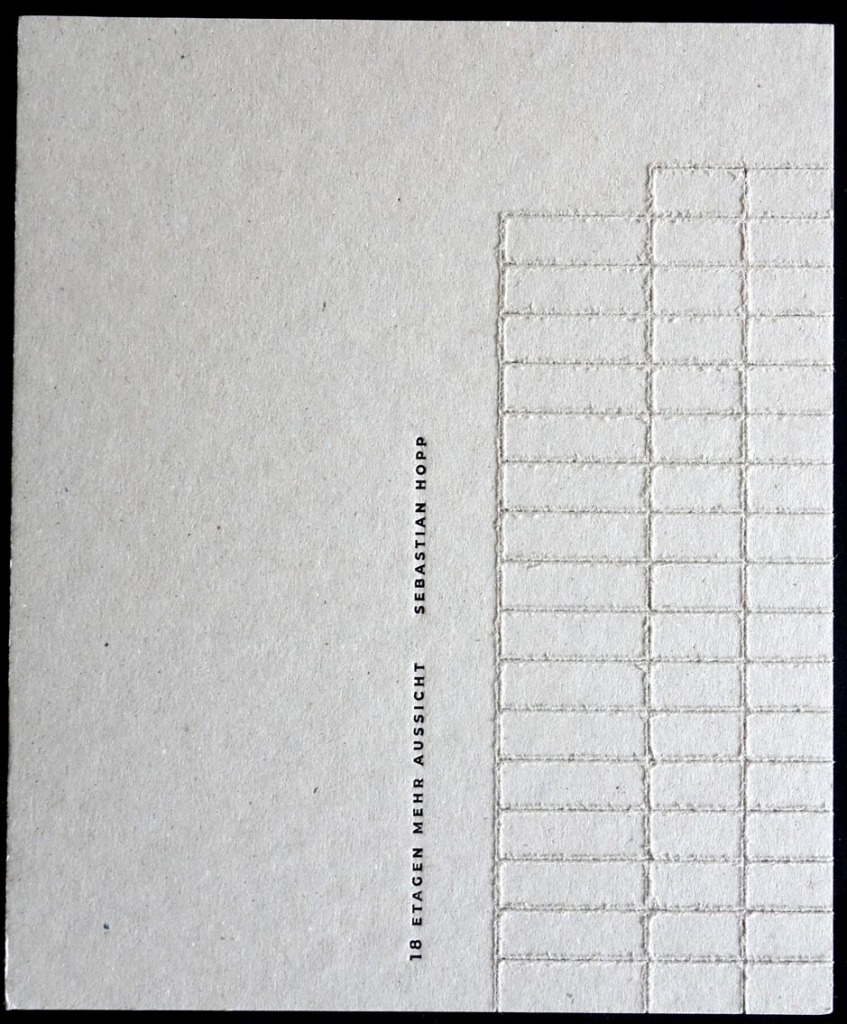 Ein von den Bewohnern verlassenes, zum Abbruch vorgesehenes Hochhaus in Dortmund reizte den Fotografen Sebastian Hopp (* 1989) zur näheren Beschäftigung. Es geht in diesem Fall nicht um Architekturkritik, sondern um das künstlerische Dokumentieren der Spuren, die die letzten Mieter in den Wohnungen hinterließen. Diese hatten offenbar nicht alles mitgenommen, sondern überflüssigen Hausrat an Ort und Stelle gelassen; der verwohnte Zustand der Behausungen erlaubte Einblicke in den jahrelangen Nutzungsprozess. Hopp filterte seine Eindrücke und destillierte daraus eine nüchtere, lakonische Fotoserie, die im Buch entsprechend unterkühlt präsentiert wird. Das fängt schon mit dem Einband an, einer dicken Graupappe, in die eine Umrisszeichnung eines Hochhausrasters so eingefräst wurde, dass sie nicht nur sicht-, sonder auch fühlbar wurde. Wohnungsnummer und Stockwerk dienten als Bildtitel, am Ende fungiert ein schematischer Plan als Register. Nicht, dass man unbedingt ganz genau wissen müsste, ob ein Motiv in der Wohnung 88 im 15. Stock gefunden wurde oder in Wohnung 78 im 13. Stock. Nein, es geht darum, die strenge Sachlichkeit des Plattenbaus mit seinem unerbittlichen Betonraster auch für die Buchgestaltung nutzbar zu machen und auf diese Weise etwas von der Atmosphäre des 1968 errichteten und 2021 abgerissenen Hauses zu bewahren.
