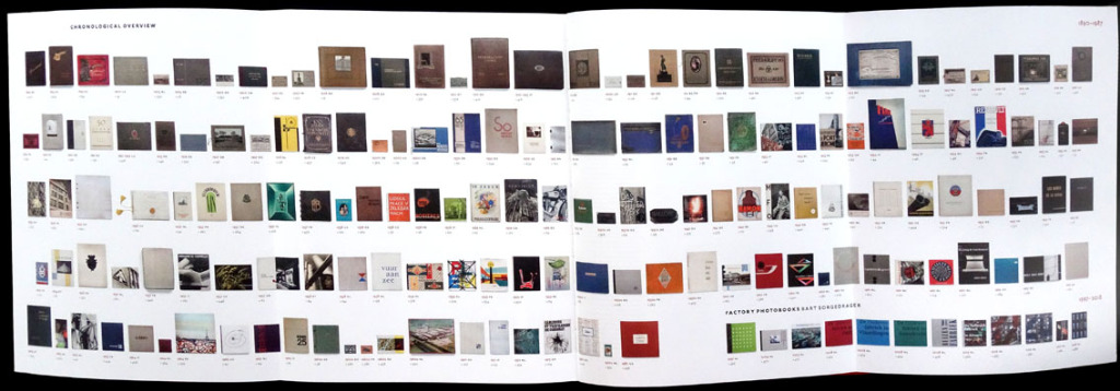 Der Amsterdamer Fotograf Bart Sorgedrager (* 1959) hat eine Anthologie zum Industriethema konzipiert, schloss dabei aber Dienstleistungsfirmen aus, die ebenfalls Fotobücher zu Jubiläen, zur Werbung oder zur Einweihung neuer Gebäude publiziert und an die Kunden verschenkt haben. Sorgedrager ging es vor allem um Fabriken, in denen physisch fassbare Produkte hergestellt wurden oder werden, sei(en) es Stahl, Fahrzeuge, Bier oder Papier. Dafür wurden Fotobücher aus westlichen bzw. kapitalistischen Ländern herangezogen, während die Phase der Planwirtschaft in osteuropäischen Ländern außen vor bleibt. Die Zeitspanne reicht dabei ab 1890 über etwa 100 Jahre. Da keine Vollständigkeit angestrebt wurde (was auch utopisch wäre) und als Basis die Sammlung des Herausgebers diente (hin und wieder um rare Exemplare aus Bibliotheken oder von anderen Sammlern ergänzt), bietet Factory Photobooks vor allem eine sowohl subjektive als auch kompetente Auswahl, bei der natürlich einige wichtige Klassiker des Genres nicht fehlen durften (AEG 1908, Krupp 1912, NKF). Kennzeichen aller ausgewählten Publikationen ist eine hohe Qualität und/oder Originalität von Gestaltung, Fotos, Druck, Ausstattung und Verarbeitung. Zu sehen ist sozusagen nur die Spitze eines Eisbergs. Der Kosmos der fotoillustrierten Firmenschriften ist unermesslich; von daher ist dieser straffe, auf einen Katalog von etwa 175 Titeln konzentrierte Überblick hilfreich.