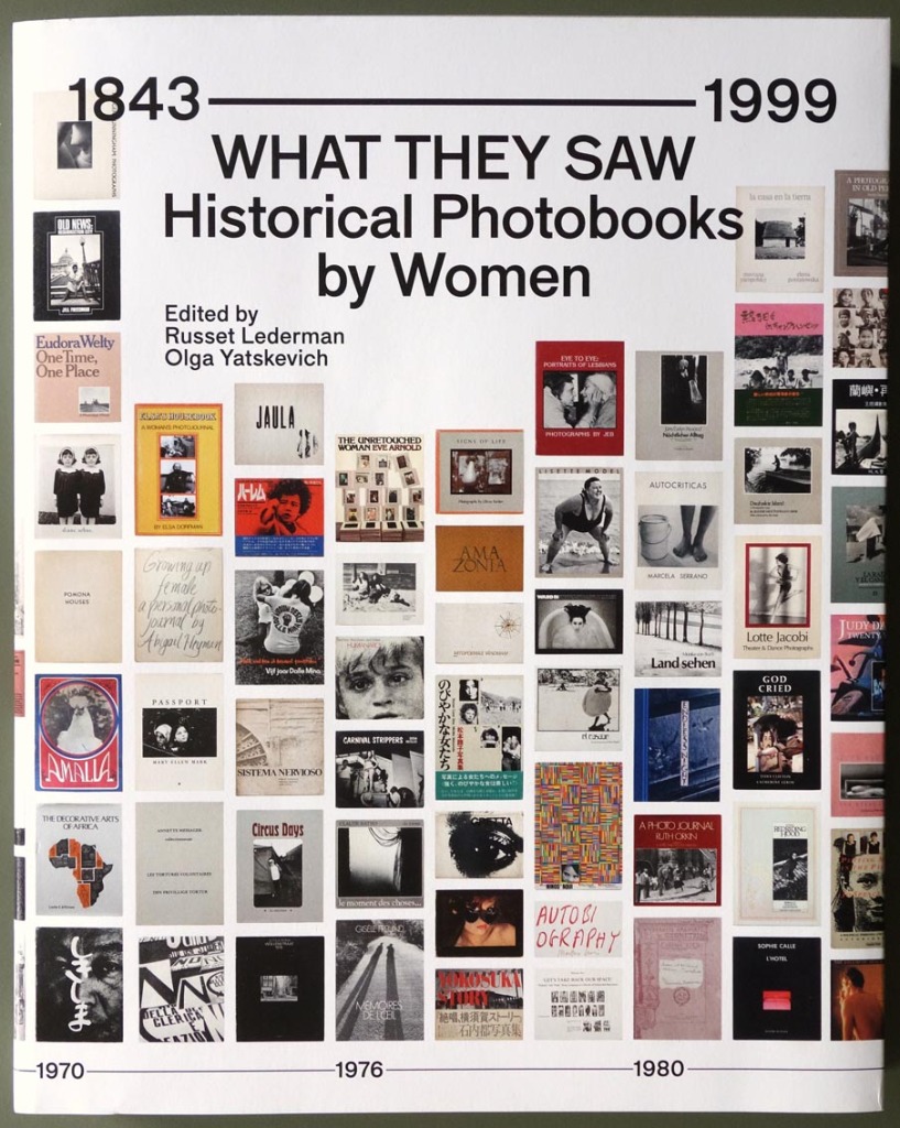 Nachdem die Nonprofit-Organisation 10 x 10 Photobooks 2018 einen, inzwischen in der 3. Auflage vorliegenden Überblicksband How we see zum Thema Fotobücher von Frauen mit Schwerpunkt auf die aktuelle Szene vorgelegt hatte, folgte nun der historische Überblick What they saw über den Zeitraum von 1843 bis 1999. Das Buch ist erfreulich übersichtlich gestaltet und es gibt auch keine Auswahlen von 10 Büchern von 10 Personen mehr. Die Anordnung folgt nunmehr sowohl dem Zeitstrahl als auch bestimmten thematischen Schwerpunkten (1843-1919 =Wegbereiterinnen, 1920-1935 = Die neue Frau, 1956-1964 = Bücher als Bomben etc.). Neben ausführlicher mit Text, Bibliographie und mindestens zwei Reproduktionen vorgestellten Hauptwerken werden in der Marginalspalte noch weitereBücher genannt und zusätzliche Informationen über Ereignisse, Autorinnen etc. gegeben. Details über Auflagen, Ausgaben und Ausstattungen finden sich jedoch nur kursorisch in den Buchporträts. Jedes der zehn Kapitel wird von einem Essay eingeleitet (von denen drei von Männern beigesteuert wurden!), zudem gibt es ein Vorwort der beiden Herausgeberinnen, eine Gesamteinleitung sowie zum Abschluss eine kurze Liste von fotogeschichtlichen Werken von Frauen und einen Index. Der Schutzumschlag zeigt alle vorgestellten Bücher auf einen Blick.