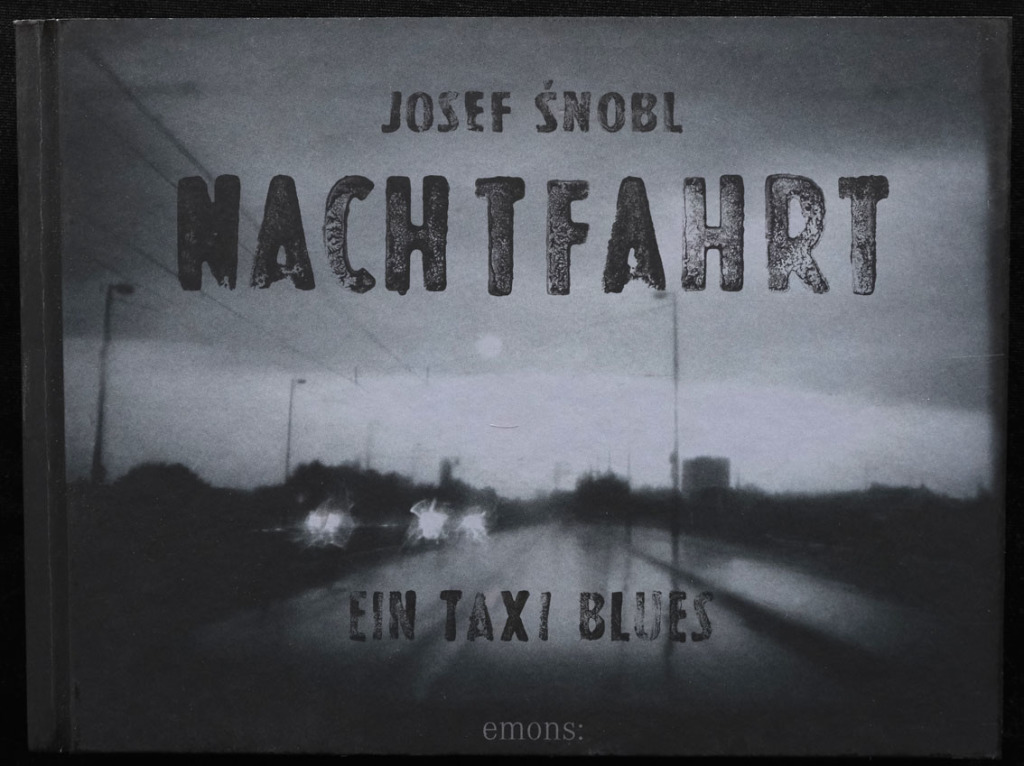 Zusammen mit tagebuchartigen Beschreibungen des Alltags auf der Straße, in denen er lakonisch über die Begegnungen mit Fahrgästen und andere Erlebnisse berichtet, entstand jetzt ein faszinierendes Fotobuch über eine Großstadt bei Nacht. Manchmal erkennt man Köln an Details. Zu jeder Geschichte gibt es einen Verweis auf einen passenden Musiktitel. Die Bilder sind oft unscharf und geben nicht wirklich preis, was sie zeigen, aber das nachtschwarze, auf mattem Papier realisierte Layout bindet alles zusammen. Sogar die Schnitte des Buchblocks sind schwarz! Vermittelt wird eine sentimentale Stimmung in einsamen Regennächten, mit verschwommenen Neonlichtern, seltsamen Automobilmotiven, leeren Straßen und angetrunkenen Karnevalisten oder sonstigen schwierigen Kunden. Das Buch ist sowohl ein Fotobuch mit kongenial begleitenden Texten als auch eine literarische Reportage mit perfekt passenden Illustrationen. Šnobl ist sicherlich froh, dem Taxifahren entronnen zu haben, aber das jetzt rückblickend erschienene Buch hat das Durchhalten in diesem Job gelohnt!