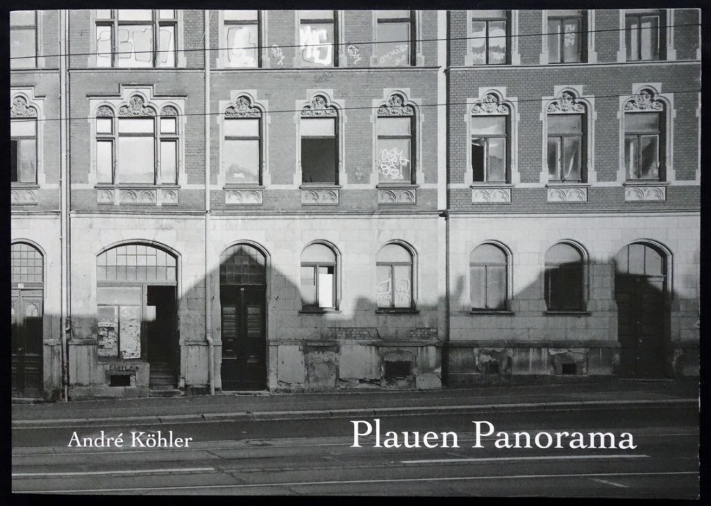 André Köhler (* 1968) hat sich für sein Stadtportrait über Plauen für die erste Möglichkeit entschieden und fotografiert mit einer selbstgebauten Kamera auf Planfilm. Das ist erkennbar, weil in dem aus diesen Bildern entstandenen Buch die Formatbegrenzungen des Films als schwarze Rahmen mit gescannt und abgedruckt wurden; rechts am Rand hat der Fotograf in winziger Schrift das jeweilige Motiv bezeichnet und datiert. Das Bildformat entspricht, wie bei einem Kontaktabzug, dem Aufnahmeformat und diesem wiederum ist das Buchformat angepasst, auch wenn rings um die Bilder recht viel weißer Raum bleibt. So erinnert Köhlers im Eigenverlag in einer Auflage von 300 Exemplaren erschienene Buch in seiner Gestaltung an das berühmteste aller mit der Panoramakamera entstandenen Stadtportraits, nämlich Praha Panoramaticka von Josef Sudek aus dem Jahre 1959.