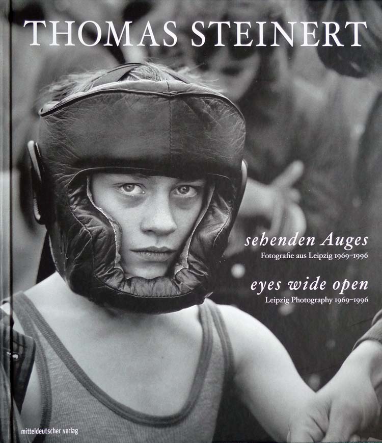 Bitte erlauben Sie mir, dass diese Buchvorstellung zum kritiklosen Dokument meiner Begeisterung geraten wird (man könnte natürlich an dem vorliegenden Buch die übertrieben sparsame Art der Präsentation…. nein, lassen wir das). Thomas Steinert (Jg. 1949) gehörte bis zum Erscheinen seines ersten Buches „Connewitzer Welttheater“ (2006) zu den großen Unbekannten unter den deutschen Fotografen. Nach seinem Studium an der Leipziger Hochschule hatte der Nonkonformist in der DDR Probleme, seine phantasievollen, immer eine ganze Geschichte erzählenden Aufnahmen aus dem oft genug grotesken Alltag der Republik zu publizieren und von seiner Kunst zu leben. Nachdem das Buch vergriffen war, eine zweite Auflage zwar angekündigt, aber nicht realisiert wurde und das Welttheater-Buch antiquarisch inzwischen nur noch zu Höchstpreisen zu bekommen ist, drohte Steinert erneut ins Abseits zu geraten. Zum Glück gibt es jetzt eine neue Monografie, die Steinerts unglaublichen Arbeiten in der Diskussion hält. Das Buch ist schlicht gestaltet, ein quadratisches Bild pro Seite mit Bildtext deutsch/englisch ergibt immerhin eine Folge erhellender Doppelseiten, und es ist preiswert.