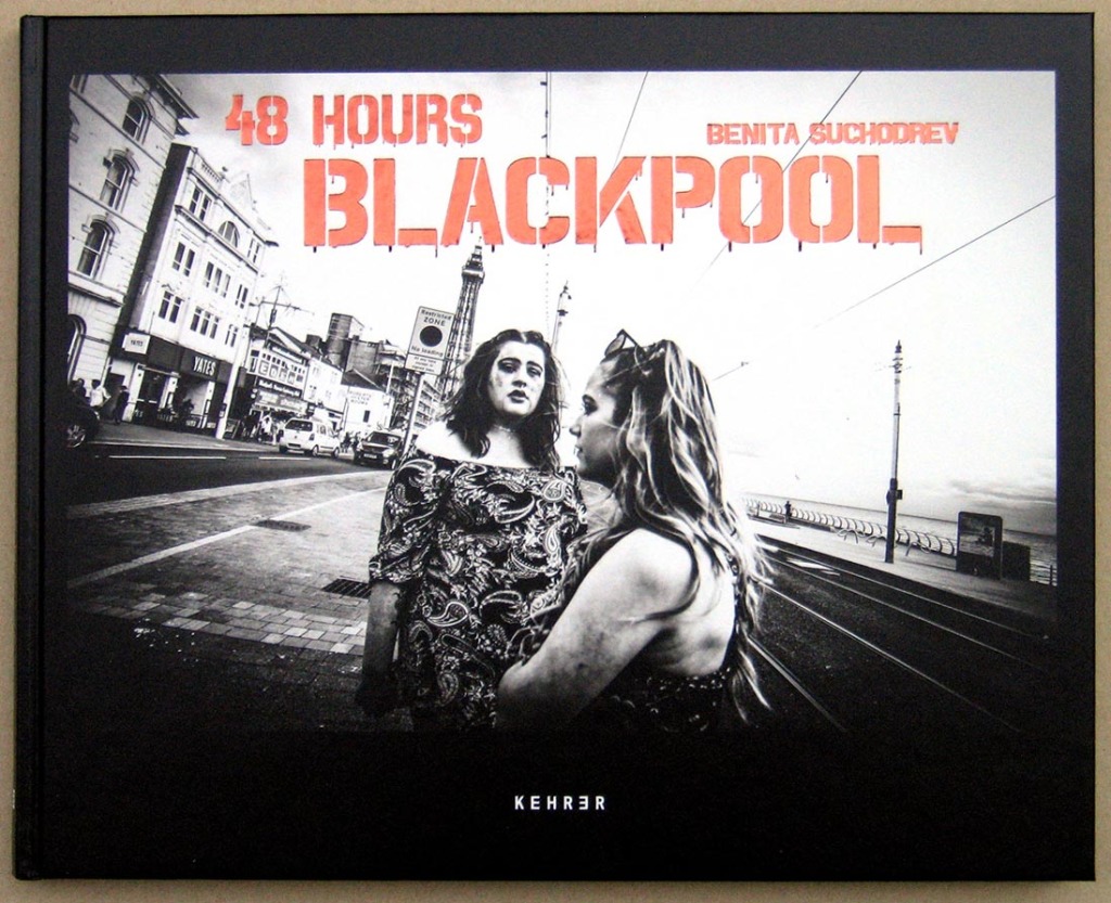 Benita Suchodrev wirft sich quasi ins Gedränge und fotografiert darauf los. Da bleibt meistens keine Zeit für bedächtige Komposition, aber sie hat ein untrügliches Gespür für die Zuspitzung einer Situation. Ihre Version des „decisive moment“ lässt nur entfernt an Henri Cartier-Bresson denken, ihr Bildklang ist rauer, und sie ist näher dran. Dabei kommen ihr durchaus lyrische Bilder in den Blick, Möwen im Formationsflug, am Ende des Buches ein einsamer High-heel-Schuh auf der Strasse. Nie jedoch ist Suchodrev denunzierend, es scheint, als hätte sie sich dazu gehörig gefühlt, nie abgehoben. Sie ist in dem Spiel ganz dabei, und das gibt ihren Bildern etwas Leichtes trotz harter Kontraste. Sie verwendet ein starkes Weitwinkelobjektiv, so dass selbst bei grosser Nähe zu den Protagonisten stets viel Umfeld gezeigt wird, nämlich das grausige Blackpool. Der Betrachter weiss stets, wo er ist. Nach dem ersten atemlosen Durchgang durchs Buch nehme man sich Zeit für bedächtigere Betrachtung: der Detailreichtum der Bilder ist beachtlich. Benita Suchodrev ist nicht etwa Martin Parr in Schwarzweiss, denn jener ist weitaus kalkulierter in seinen teils brutalen Anmerkungen zur britischen Wesensart. Zur fotografischen Genealogie und zur Erläuterung der Bildsprache möchte ich eher auf Bruce Gilden, William Klein oder Eugene Richards, sogar auf Herlinde Koelbl verweisen, auch das in Vergessenheit geratene, großartige Neapel-Buch von Wilfried Bauer kommt mir in den Sinn.