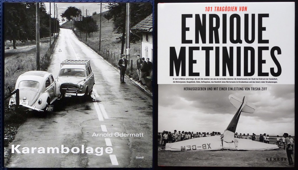 Ein einzelnes Unfallbild mag ein spektakuläres Motiv ergeben. Bei hunderten Unfallbildern greift das Gesetz der Serie, was ganz andere Assoziationen hervorruft. Arnold Odermatt, der 1925 geborene Schweizer Polizist, hat ab 1948 über vierzig Jahre lang Auto-Karambolagen in den Kantonen seiner Heimat fotografiert. Vielleicht aus Pietät, vielleicht konnte er aber auch den Anblick der zerschmetterten Körper nicht ertragen (anders Enrique Metinides, der sich immer vor allem für die Opfer interessierte) – konzentrierte sich Odermatt immer nur auf das zerbeulte Blech. Aber wahrscheinlich kam Odermatt einfach stets erst dann an und zum Zug, als die Leichen und Verletzten bereits abtransportiert waren. Seine Aufgabe war, zu dokumentieren, aufzunehmen und das im Wortsinne. Leider erfährt man in dem opulenten Band nicht viel über Odermatt, aber vielleicht gibt es aus dem Leben eines Schweizer Dorfpolizisten auch nichts zu berichten. Der Filmemacher und Autor Urs Odermatt ist irgendwann auf die verstaubten Negative gestoßen und hat seitdem mehrere Bücher über das fotografische Werk seines Vaters ediert. Karambolage erschien erstmals 2003. Die Auflage ist längst vergriffen, weshalb Steidl diesen Band unlängst nochmals herausgegeben hat. Unfälle gehen ja immer. Ergänzt wurden lediglich die Ausstellungs- und die Publikationsliste.