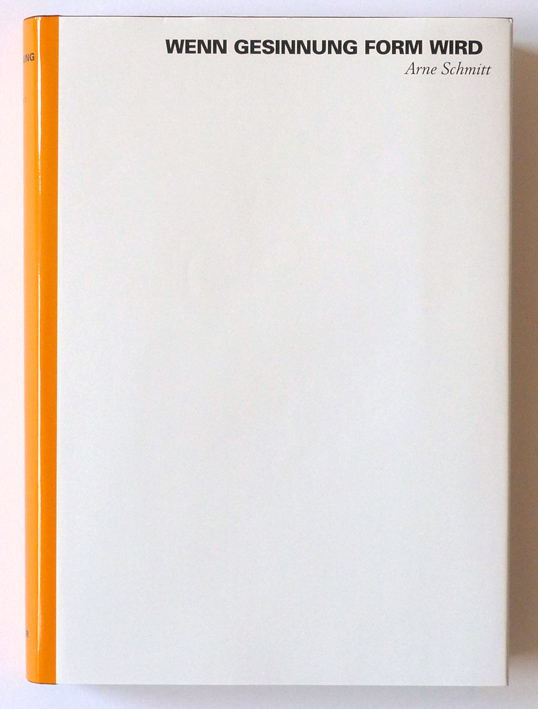 Diese architektonische und städtebauliche Epoche scheint ein Akzeptanzproblem zu haben, auch wenn sich die Denkmalpflege schon lange für die besseren Beispiele interessiert. Das die Quellen für Schmitts Inspiration offenbarende Literaturverzeichnis nennt bezeichnenderweise neben zwei „Fotobüchern“ und zwei Filmen nur Titel aus dem Architektenfach. Schmitt agiert hier aber nicht als Denkmalpfleger oder Bauforscher, sondern als Fotokünstler. Sein Blick ist nicht anteilnehmend bewahrend, sondern ironisch analysierend. Das Buch ist in einem hübschen Grau-in-Grau gedruckt, Farbe oder Brillanz wäre hier auch fehl am Platze. Schmitt hat selbstverständlich auch Kassel besucht, wenn auch die hier getroffene Motivauswahl den flüchtigen Blick des Besuchers spiegelt. Hier hätte man ohne weiteres noch treffendere ästhetische Entgleisungen finden und verarbeiten können. Aber darum ging es ja gar nicht, der Blick ist immer auf die alltägliche Tristesse, die durchschnittliche Architektur gerichtet, auf Objekte und Situationen, die man im Vorbeigehen übersieht und nicht mehr wahrnimmt. Schmitts Buch bringt so oder so eine der zentralen Thesen von Hans-Peter Feldmanns Eine Stadt: Essen (1977) oder Michael Schmidts Berlin-Wedding (1978) auf den neuesten Stand und erweitert den Blick vom Speziellen eines Ortes auf das Symptomatische einer irgendwie ungemütlichen, rationell und rational durchgeplanten Atmosphäre, für die der markig-provokante Titelslogan Wenn Gesinnung Form wird genau ins Schwarze trifft.